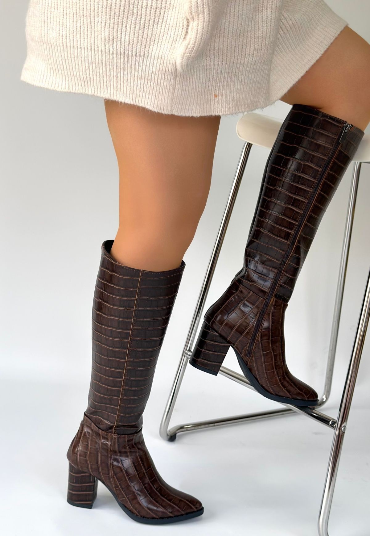 Detay: Topuklu Diz Altı Yandan Fermuarlı Çizme