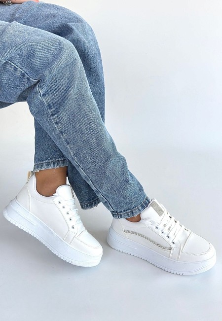 Natte Beyaz Cilt Bağcıklı Spor Ayakkabı - 265612