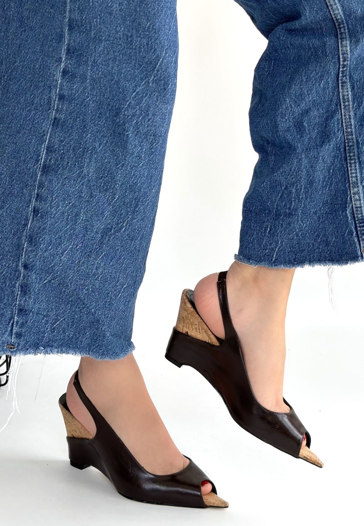 Nemba Kahverengi Rugan Dolgu Topuk Ayakkabı - 268392