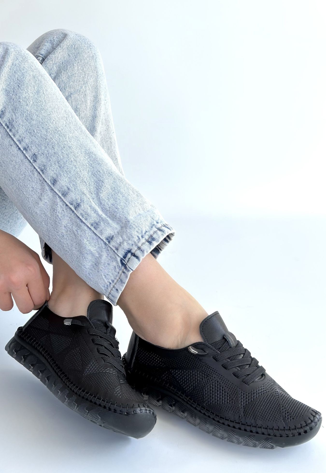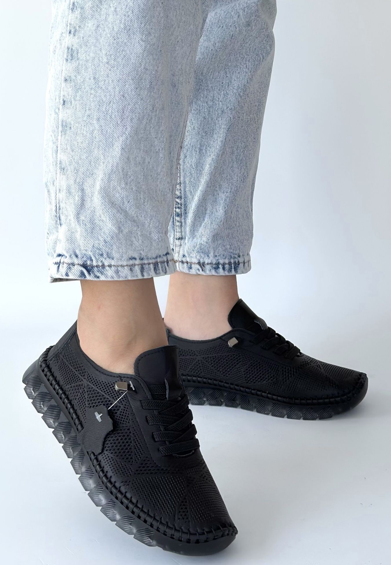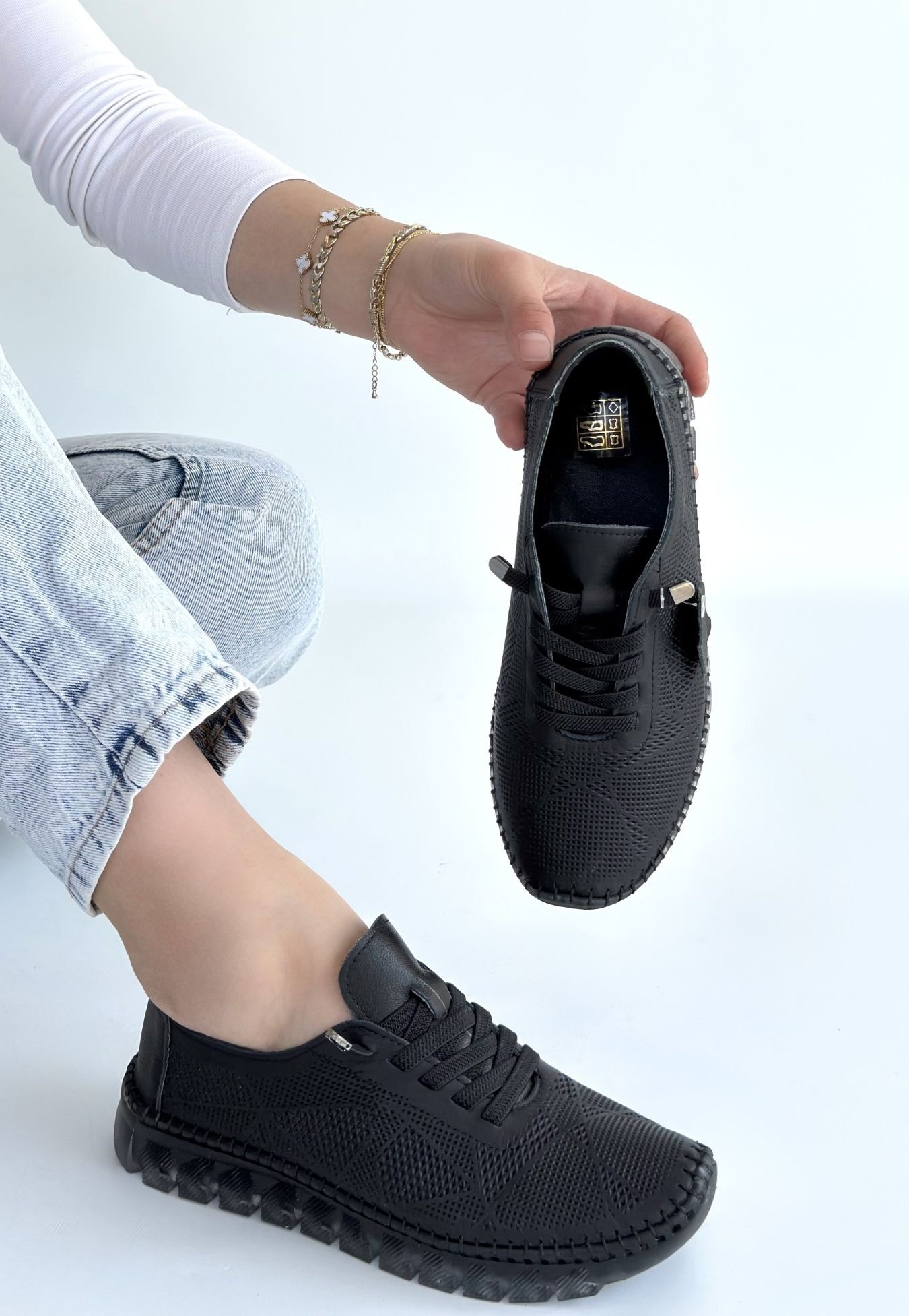 Omma Siyah Deri Lazerli Bağcıklı Spor Ayakkabı - 268091