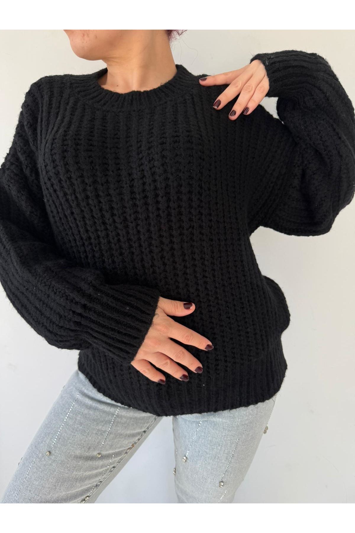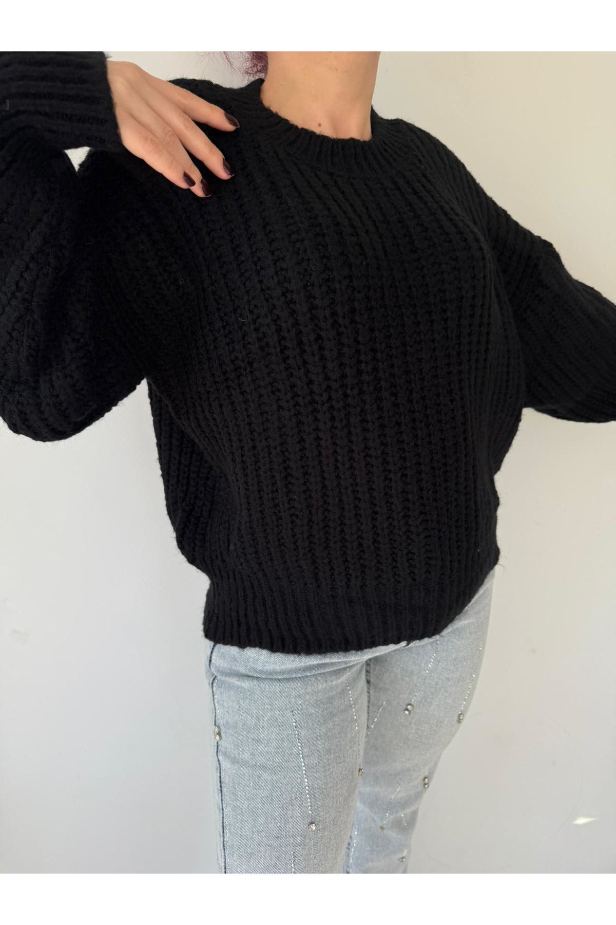 • Model: Uzun kollu, siyah kazak.