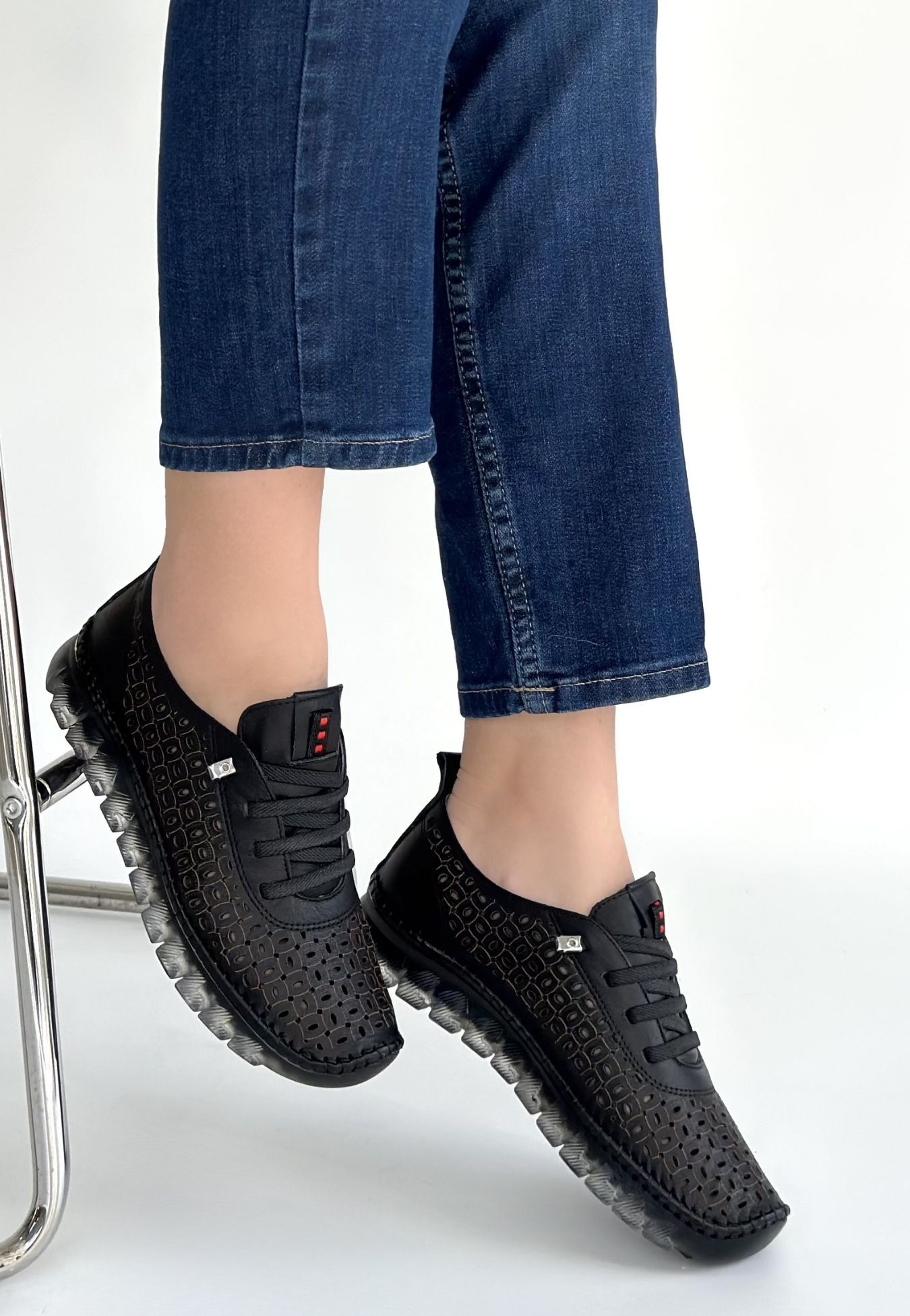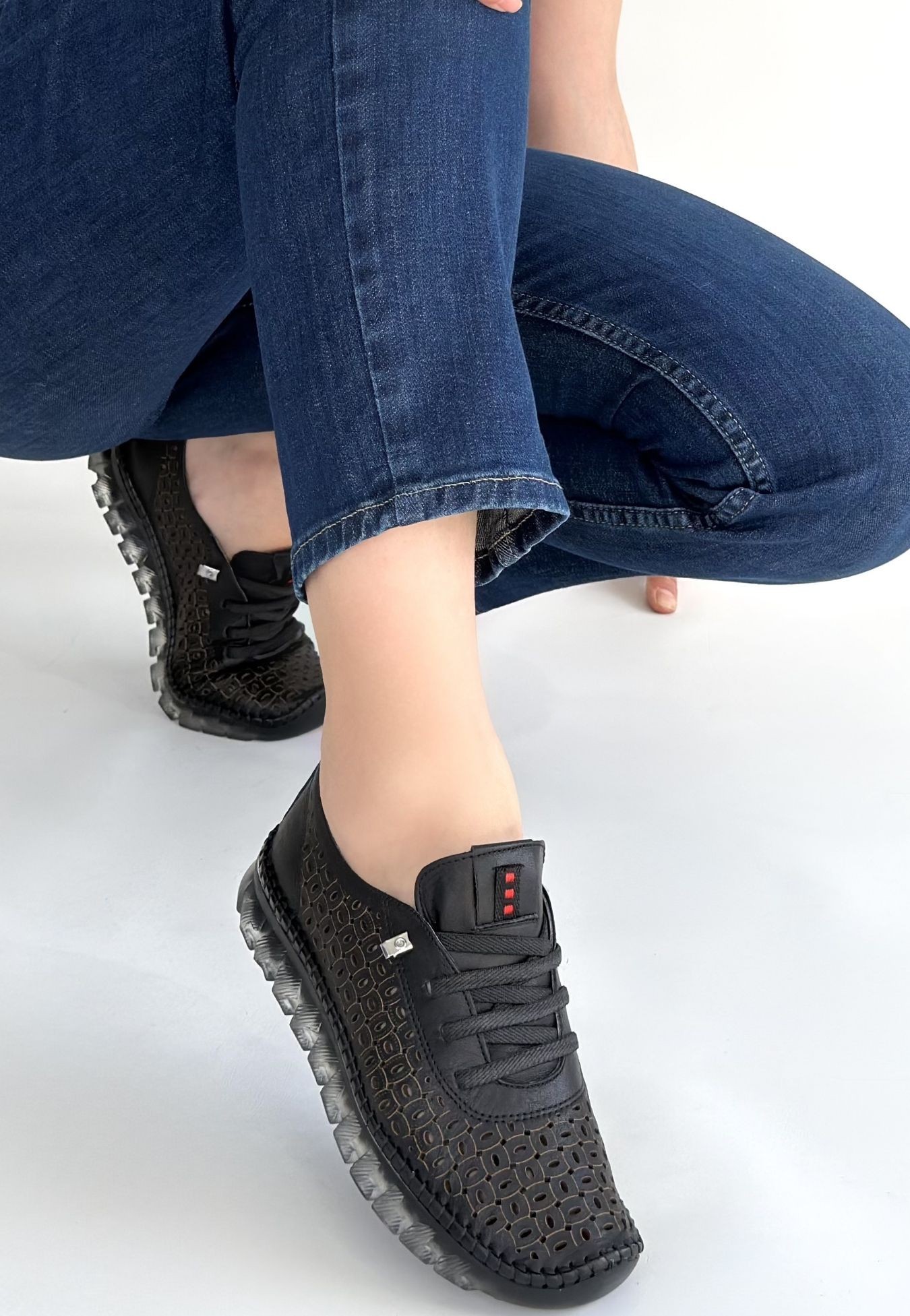 Otja Siyah Deri Lazerli Bağcıklı Spor Ayakkabı - 267854