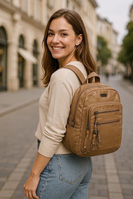 zarif ve kompakt tasarımıyla günlük kullanım için mükemmel bir kadın sırt çantasıdır. Yıkama deri malzemesi, çantaya modern ve şık bir görünüm kazandırırken, dayanıklılığı sayesinde uzun süreli kullanım sağlar. Küçük boyutlarıyla pratik bir seçenek sunan bu çanta, eşyalarınızı düzenli bir şekilde taşımanıza olanak tanır.