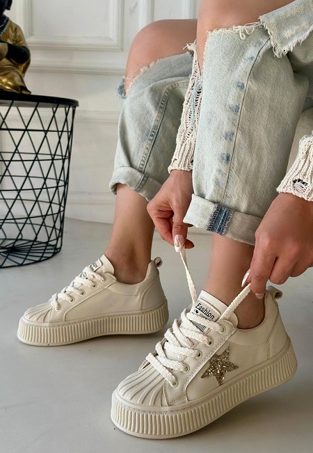 Piata Bej Cilt Bej Tabanlı Bağcıklı Spor Ayakkabı - 258586
