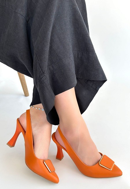Pıert Turuncu Cilt Topuklu Ayakkabı - 265375