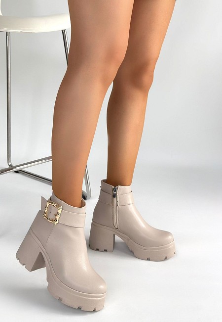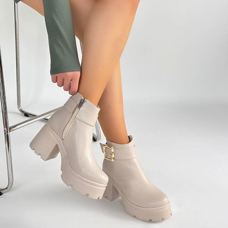 Pinma Bej Cilt Topuklu Bot - 266100