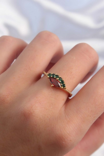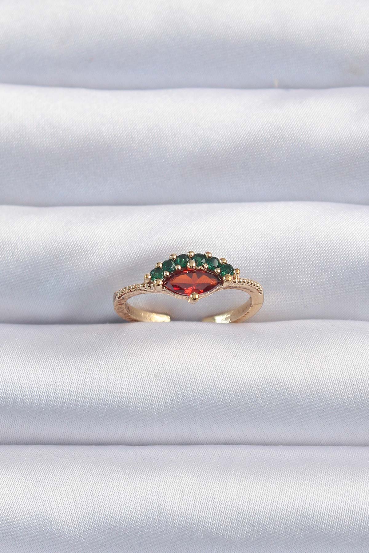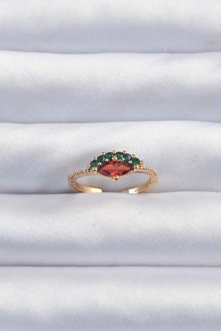 Pirinç Altın Renk Renkli Zirkon Taşlı Ayarlanabilir Karpuz Model Yüzük - 257387