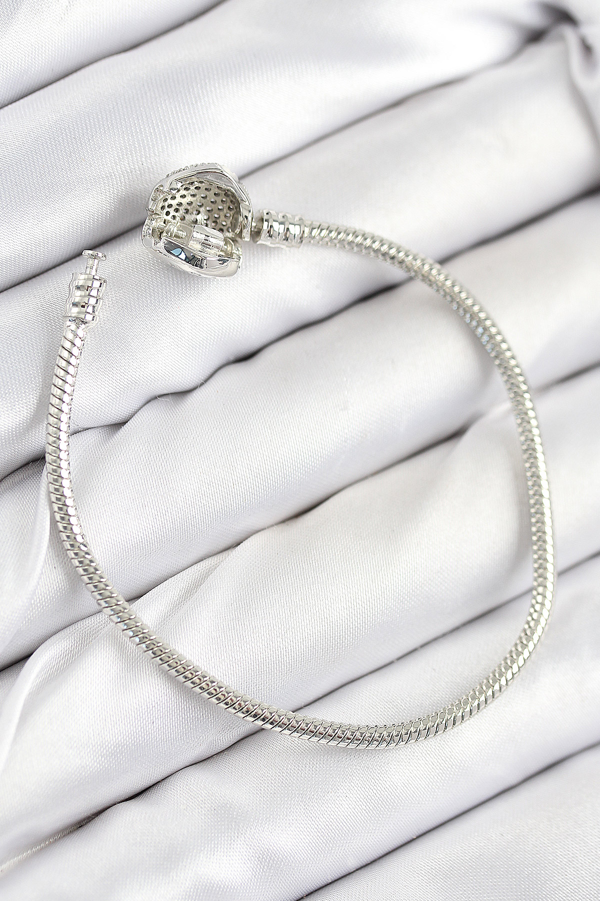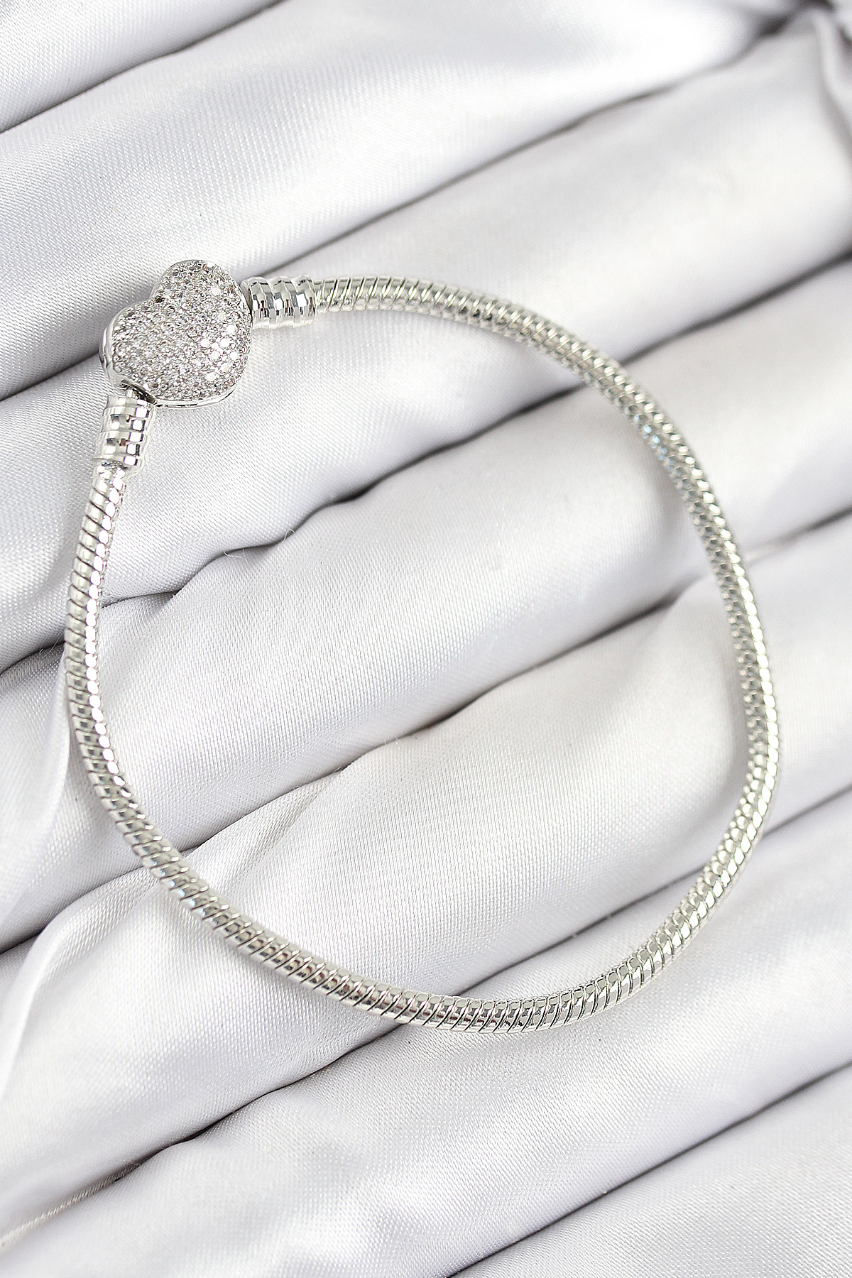 Pirinç Charm Zirkon Taşlı Kalp Model Gümüş Renk Kadın Bileklik - 265264