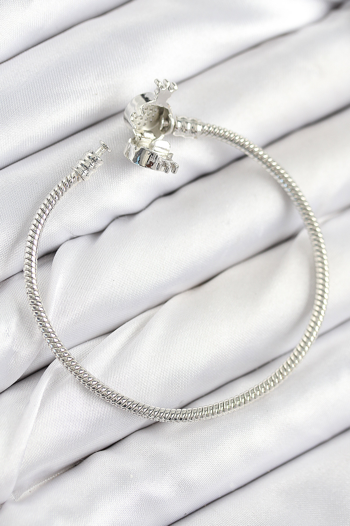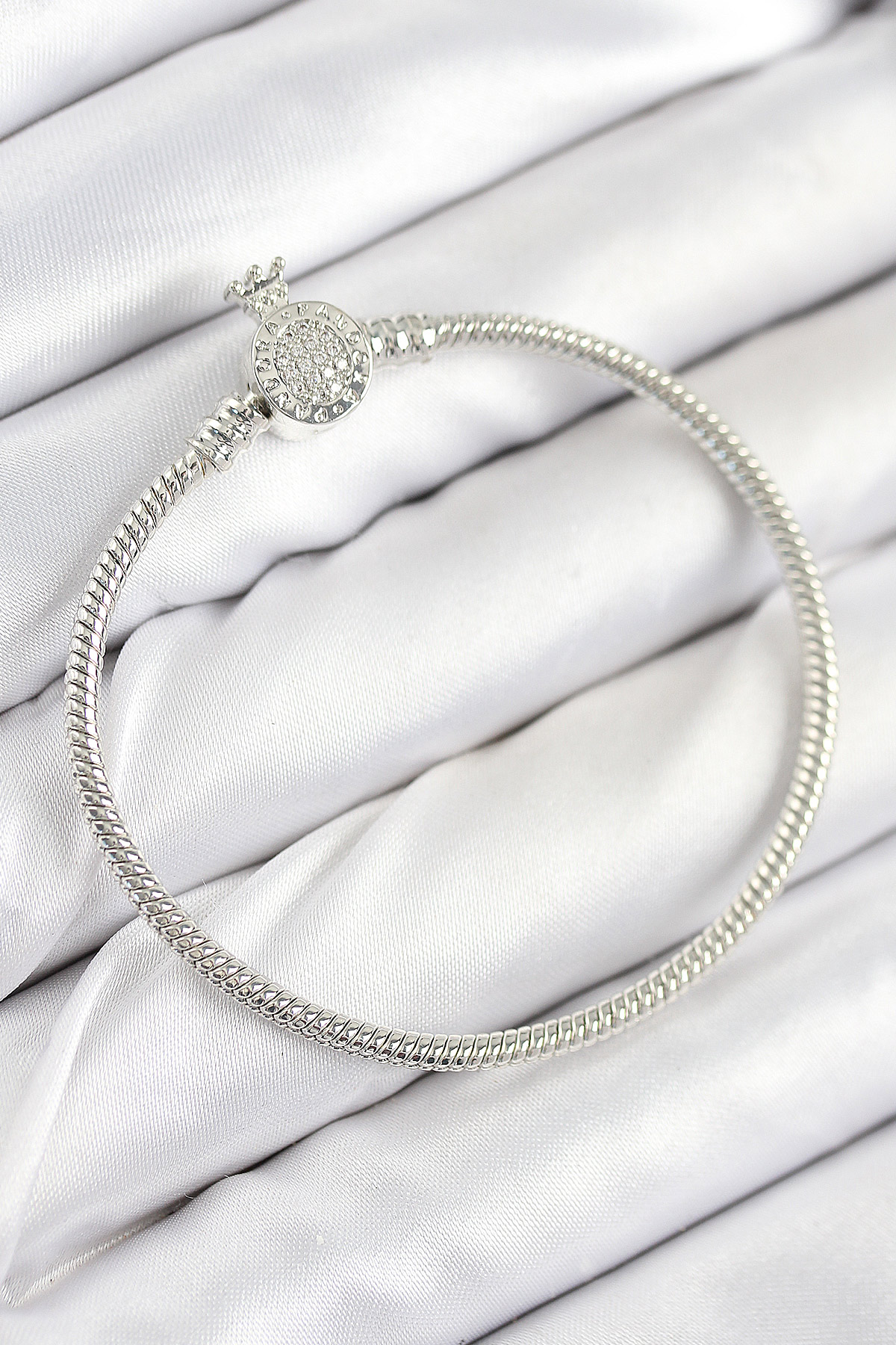 Pirinç Charm Zirkon Taşlı Taç Model Gümüş Renk Kadın Bileklik - 265263