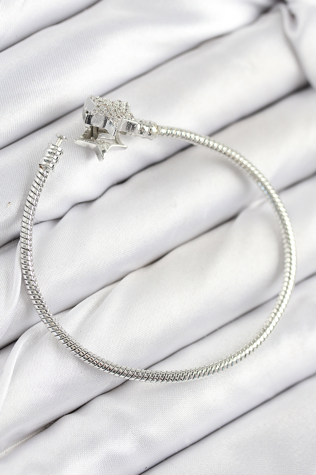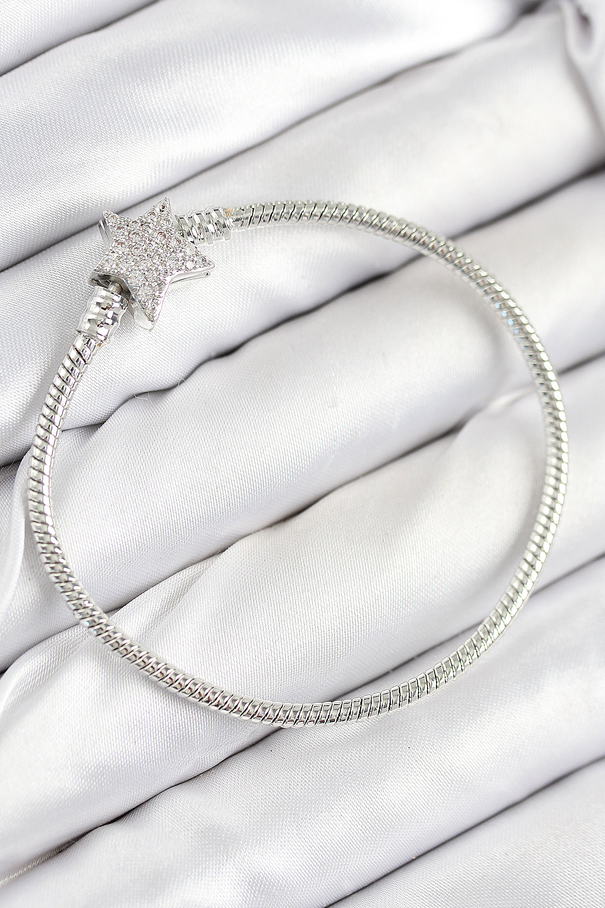 Pirinç Charm Zirkon Taşlı Yıldız Model Gümüş Renk Kadın Bileklik - 265265