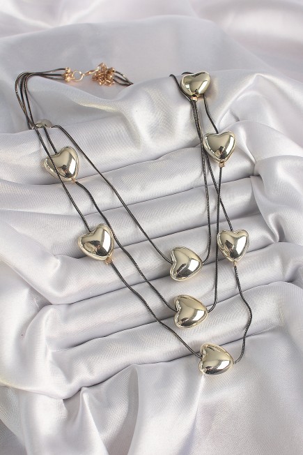 Pirinç Füme Renk Zincir 3D Gold Renk Kalp Model Kadın Kolye - 259496
