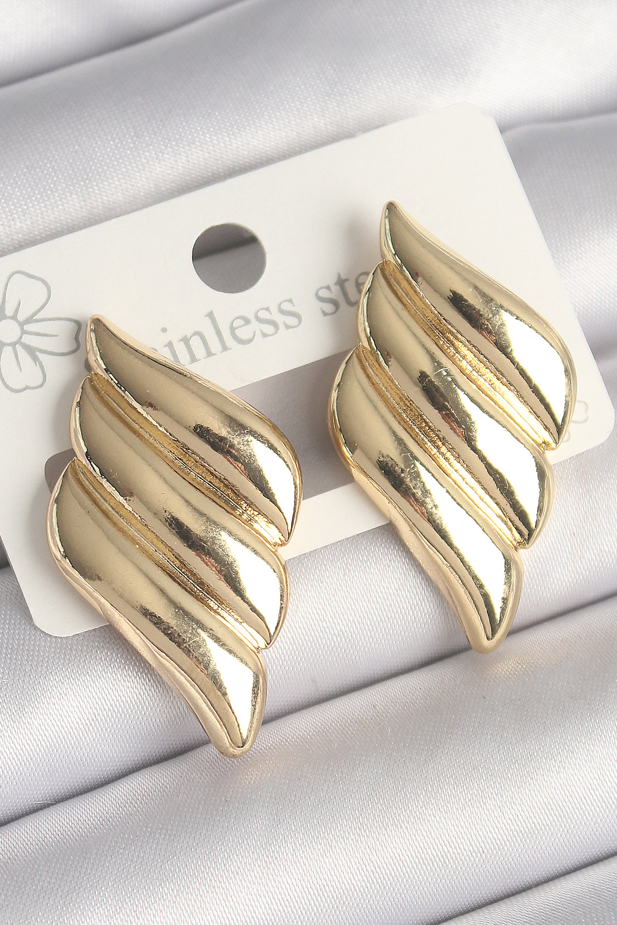 Pirinç Gold Renk 3 Sıralı Dalgalı Model Kadın Küpe - 260864