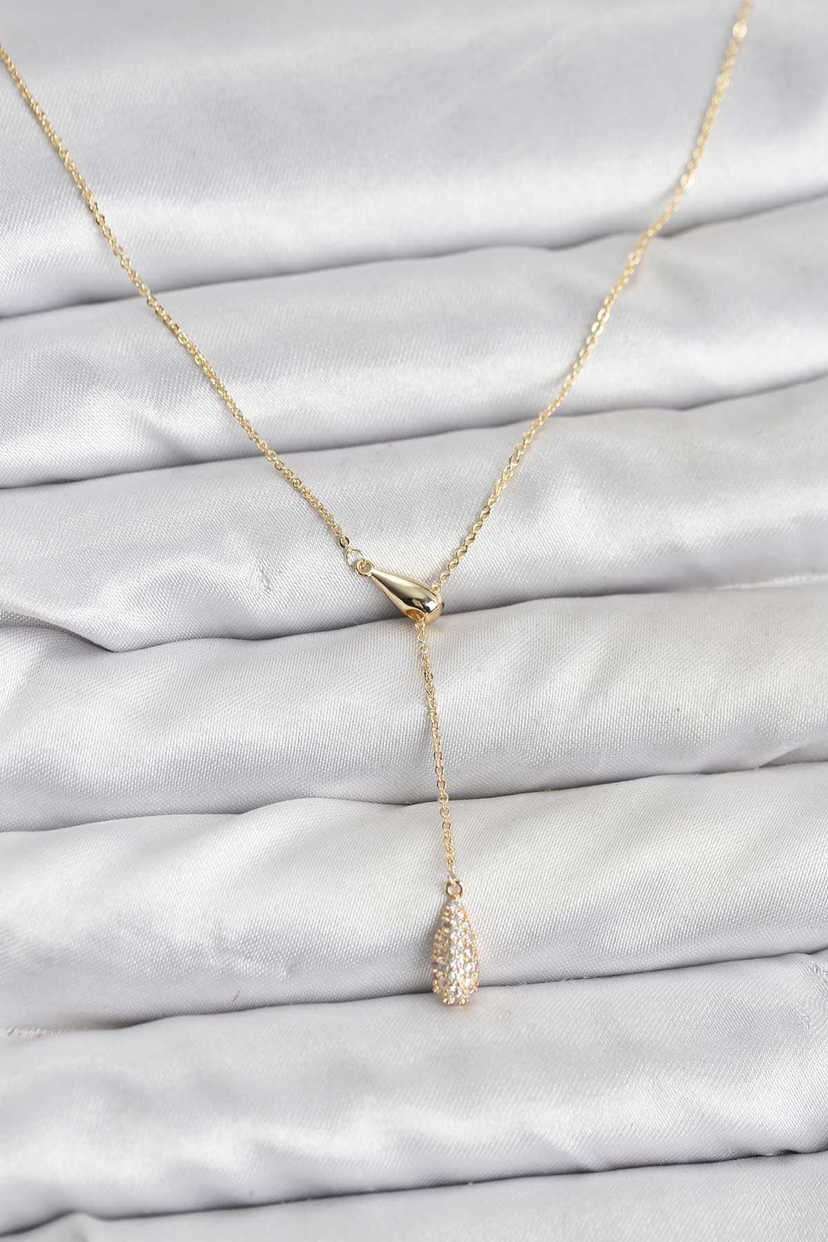 Pirinç Gold Renk Asansörlü Damla Model Kadın Kolye - 266693