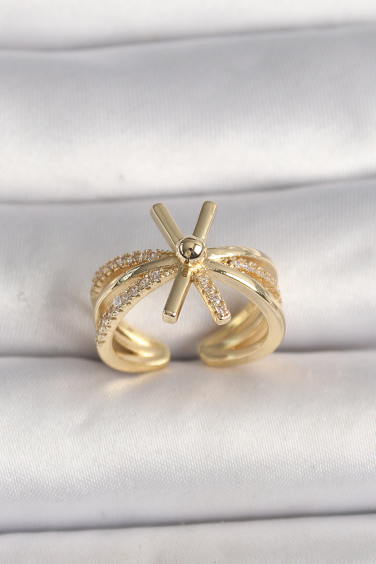 Pirinç Gold Renk Ayarlanabilir Ziron Taşlı Kadın Yüzük - 260529