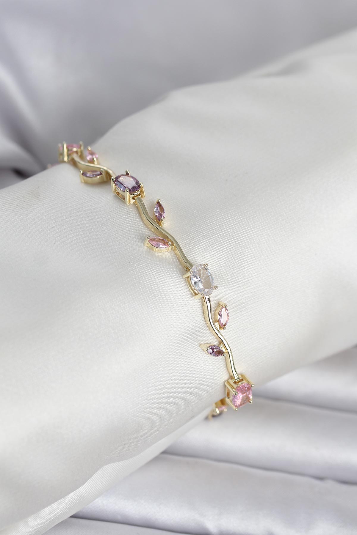 Pirinç Gold Renk Çiçek Sarmaşık Model Kadın Bileklik - 268338