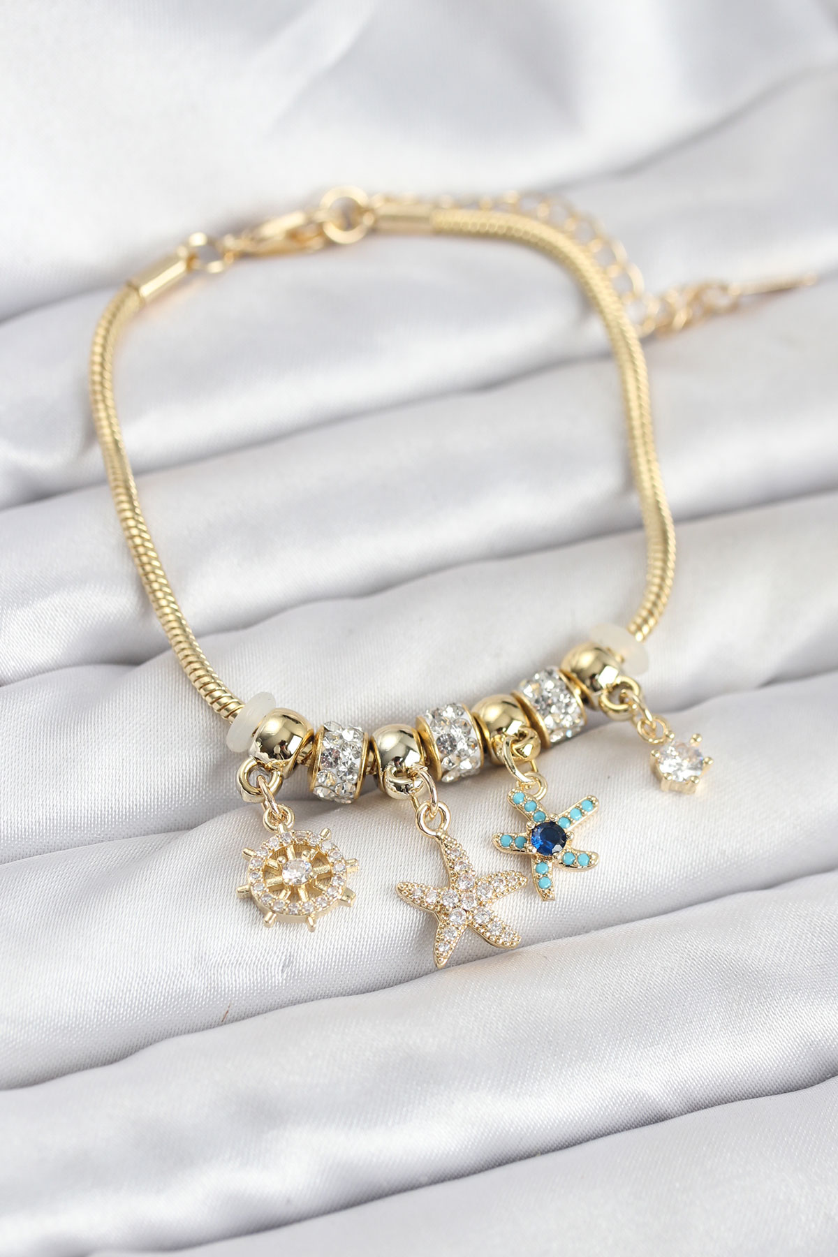 Pirinç Gold Renk Deniz Tema Charmlı Kadın Bileklik - 266903