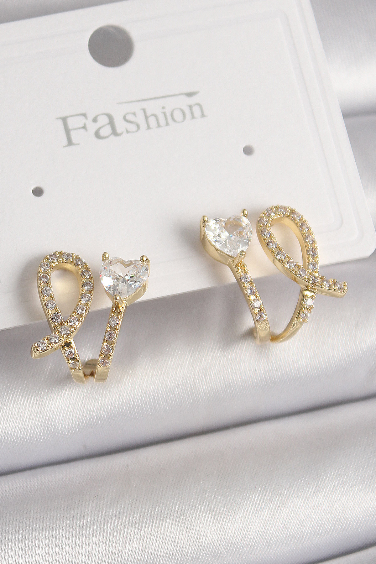 Pirinç Gold Renk Düğüm Model Zirkon Taşlı Kalp Detay Kadın Küpe - 259601