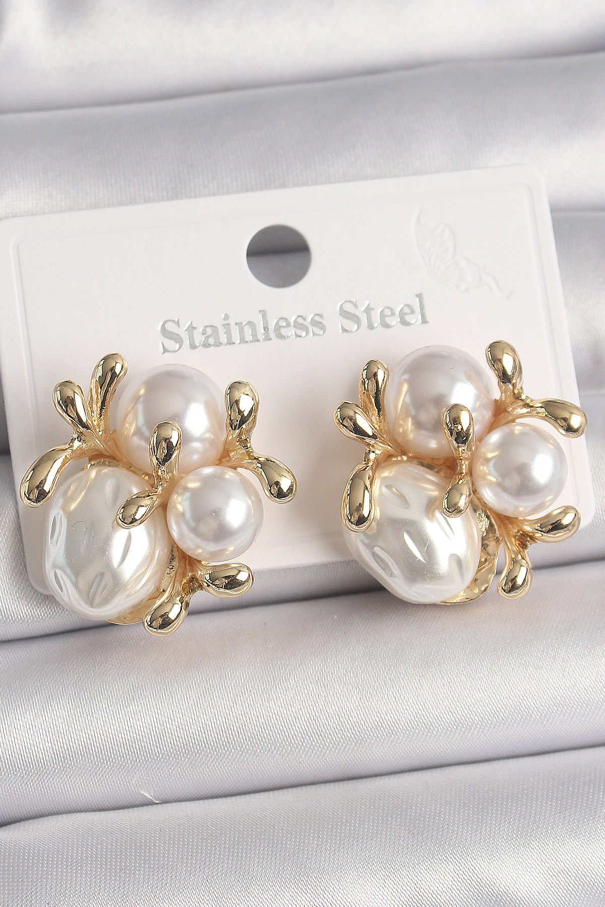 Pirinç Gold Renk İnci Tomurcuk Model Kadın Küpe - 260386