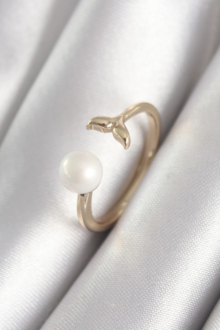 Pirinç Gold Renk İnci Top Figür Balık Kuyruğu Model Kadın Yüzük - 253875