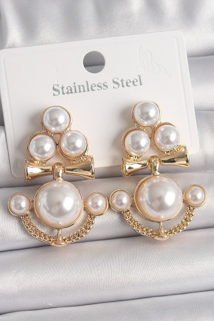 Pirinç Gold Renk İncili Çapa Model Kadın Küpe - 260377