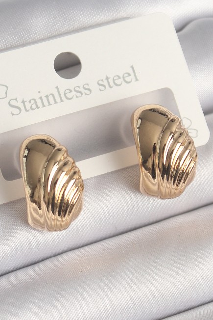 Pirinç Gold Renk İşleme Detaylı Yarım Halka Model Kadın Küpe - 260859