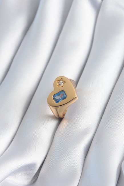 Pirinç Gold Renk Kalp Model Zirkon Taş Yıldız Detay Kadın Yüzük - 252248