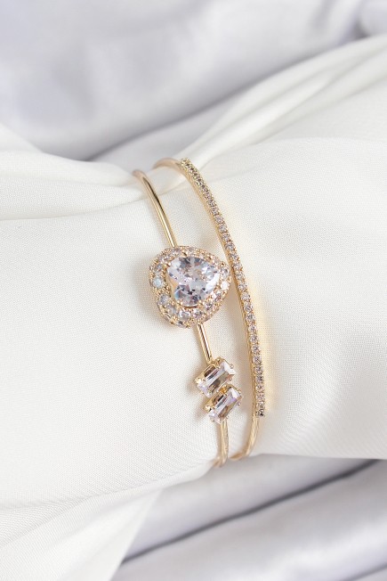 Pirinç Gold Renk Kalpli Zirkon Taşlı Kadın Bileklik - 263218