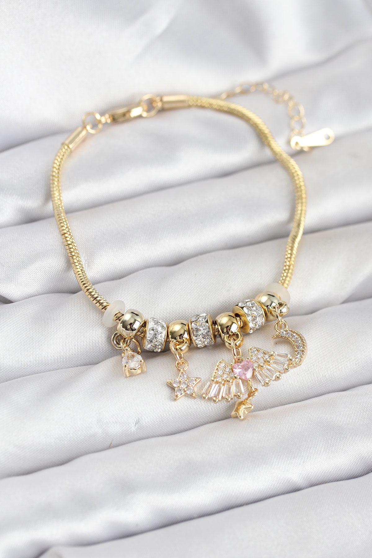 Pirinç Gold Renk Kanatlı Charmlı Kadın Bileklik - 266895