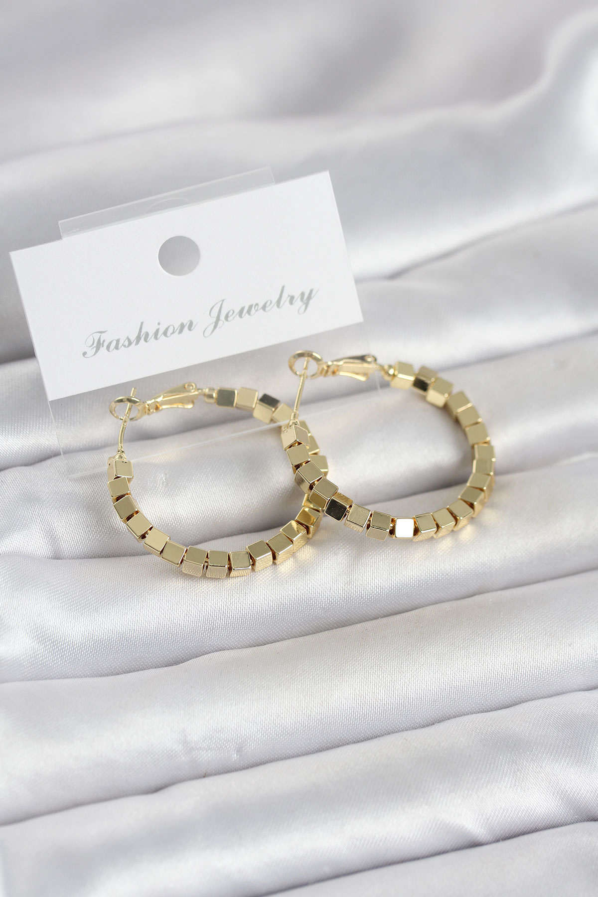 Pirinç Gold Renk Kare Halka Model Kadın Küpe - 268479