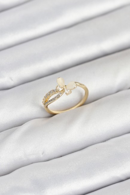 Pirinç Gold Renk Kelebek Zirkon Taşlı Kadın Yüzük - 265789