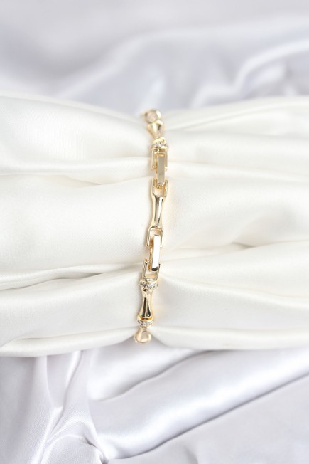 Pirinç Gold Renk Kemik Model Zirkon Taşlı Kadın Bileklik - 266042