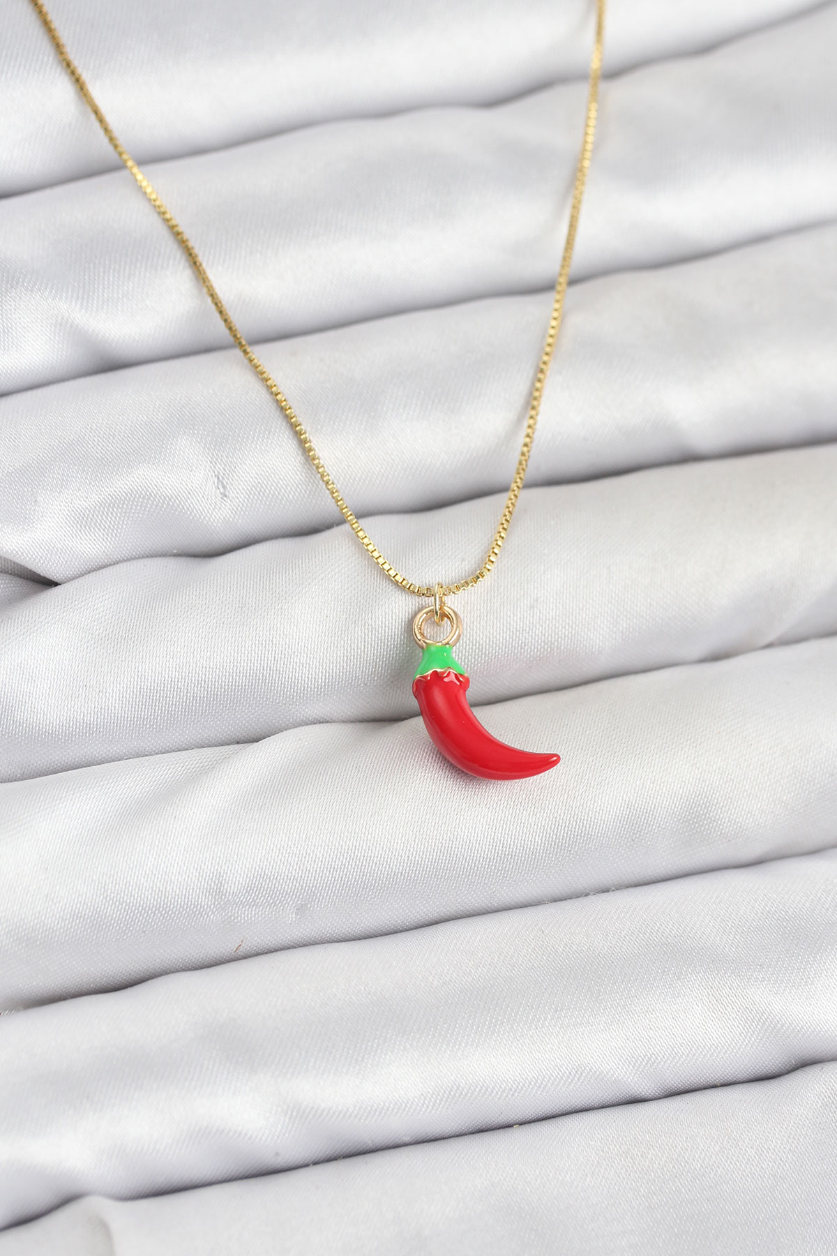 Pirinç Gold Renk Kırmızı Kapya Biber Model Kadın Kolye - 266790