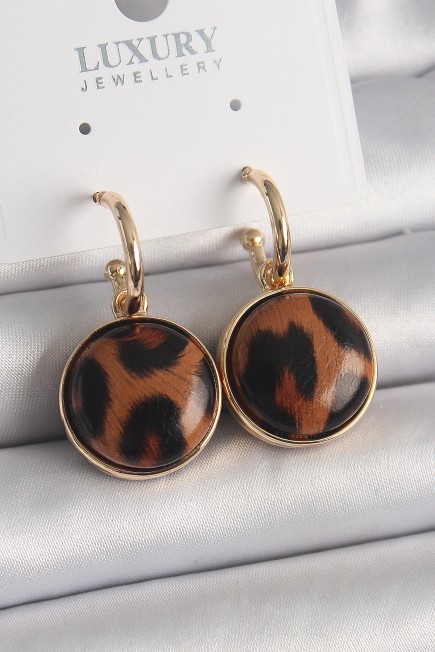 Pirinç Gold Renk Leopar Desenli Daire Model Kadın Küpe - 259569