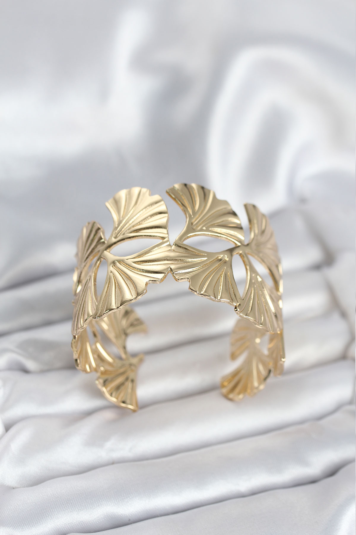Pirinç Gold Renk Levha Yelpaze Model Kadın Bileklik - 266137