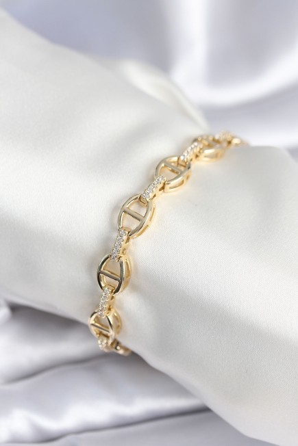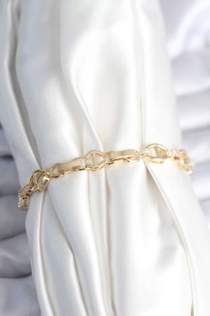 Pirinç Gold Renk Parçalı Zincir Model Kadın Bileklik - 265869