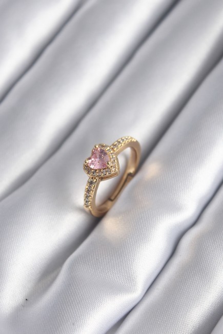 Pirinç Gold Renk Pembe Zirkon Taş Kalp Charm Model Kadın Yüzük - 252615
