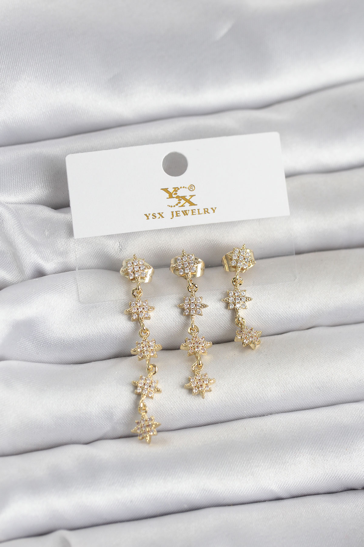 Pirinç Gold Renk Sıralı Kutup Yıldızı Model 3'lü Kadın Küpe - 268138