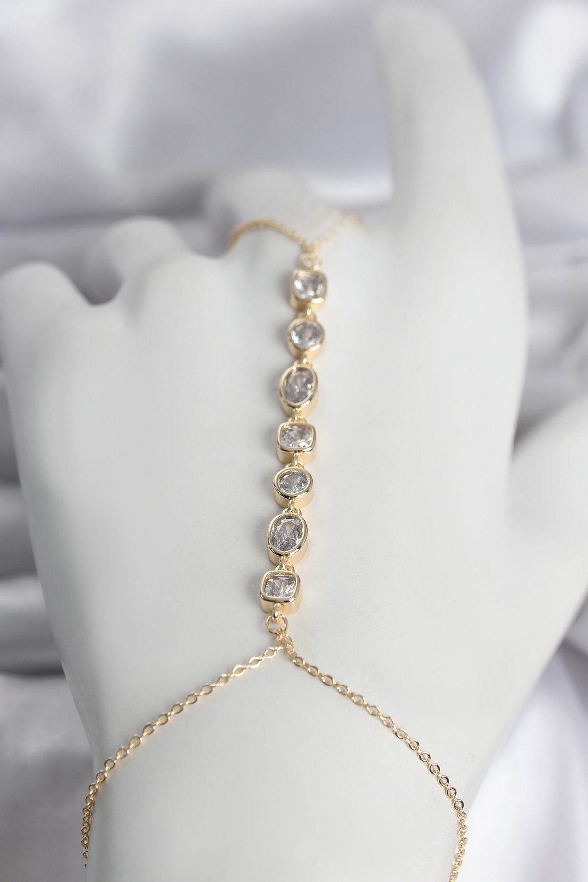 Pirinç Gold Renk Sıralı Zirkon Taşlı Kadın Şahmeran - 268178