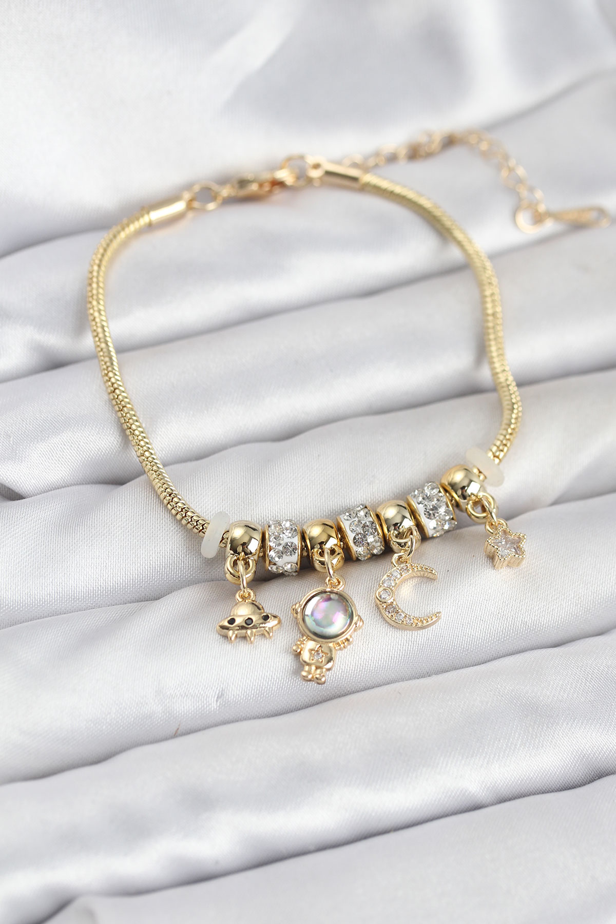 Pirinç Gold Renk Uzay Tema Charmlı Kadın Bileklik - 266875