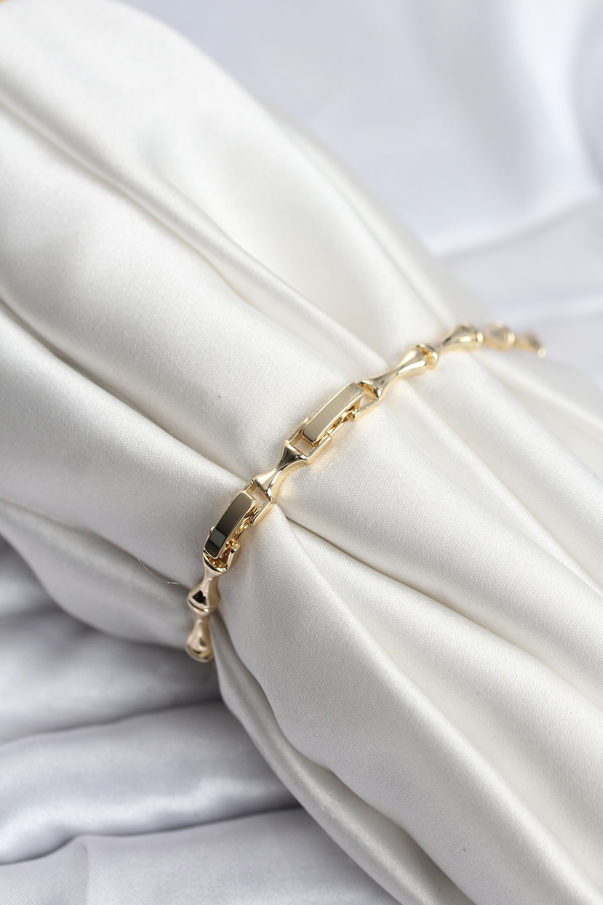 Pirinç Gold Renk VIP Seri İnce Kemik Model Zirkon Taşlı Kadın Bileklik - 267185