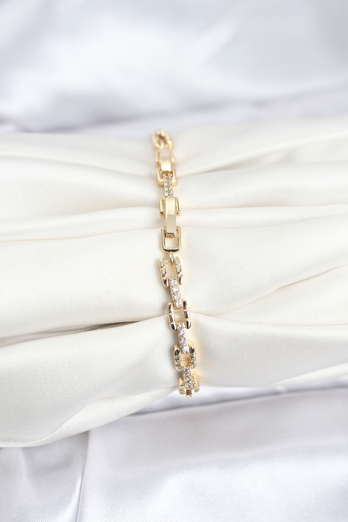 Pirinç Gold Renk VIP Seri Zincir Model Zirkon Taşlı Kadın Bileklik - 267179