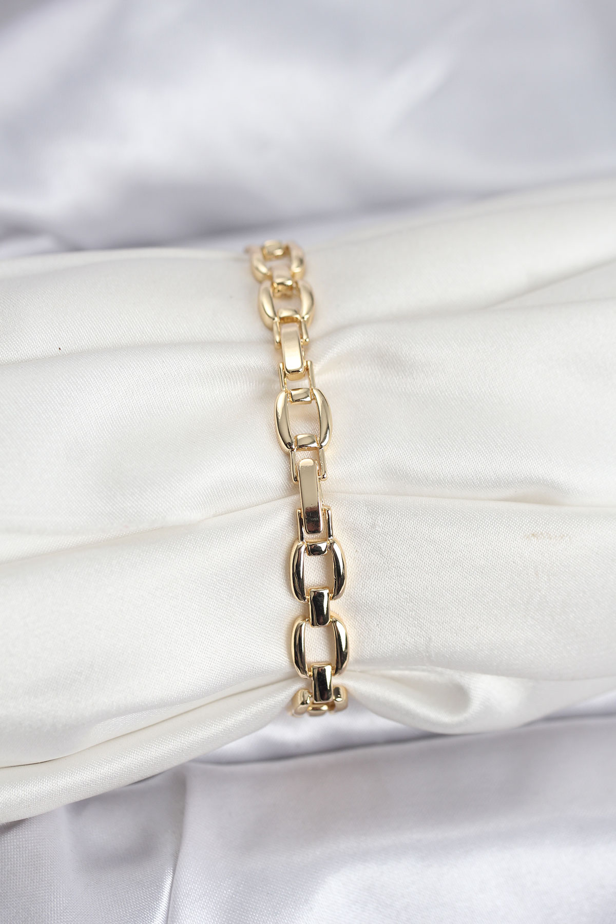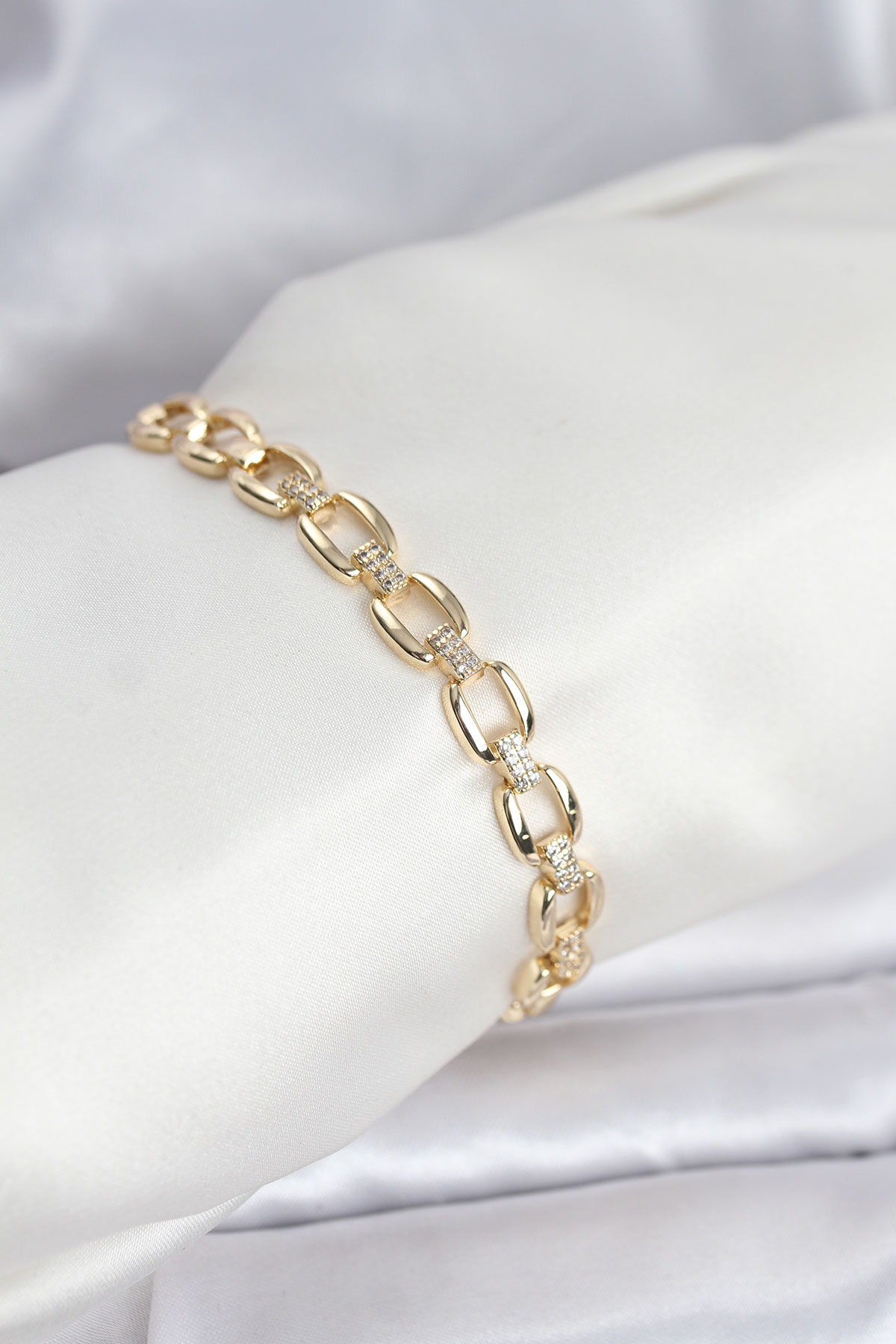 Pirinç Gold Renk VIP Seri Zincir Model Zirkon Taşlı Kadın Bileklik - 267183