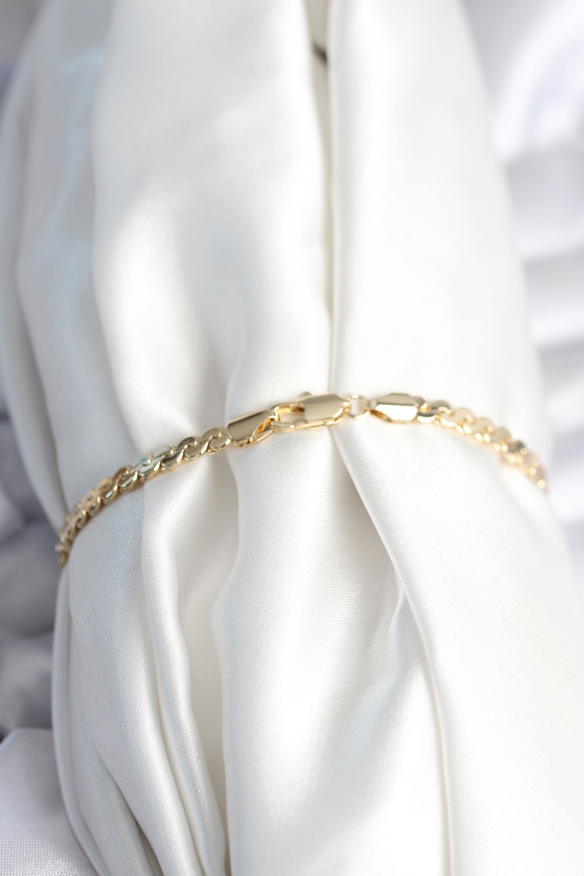 Pirinç Gold Renk Yassı Zincir Model Kadın Bileklik - 265863