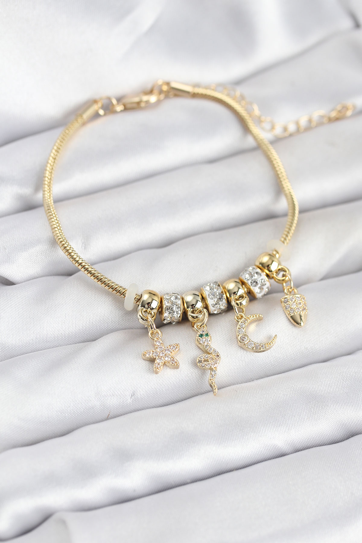 Pirinç Gold Renk Yılan Charmlı Kadın Bileklik - 266879