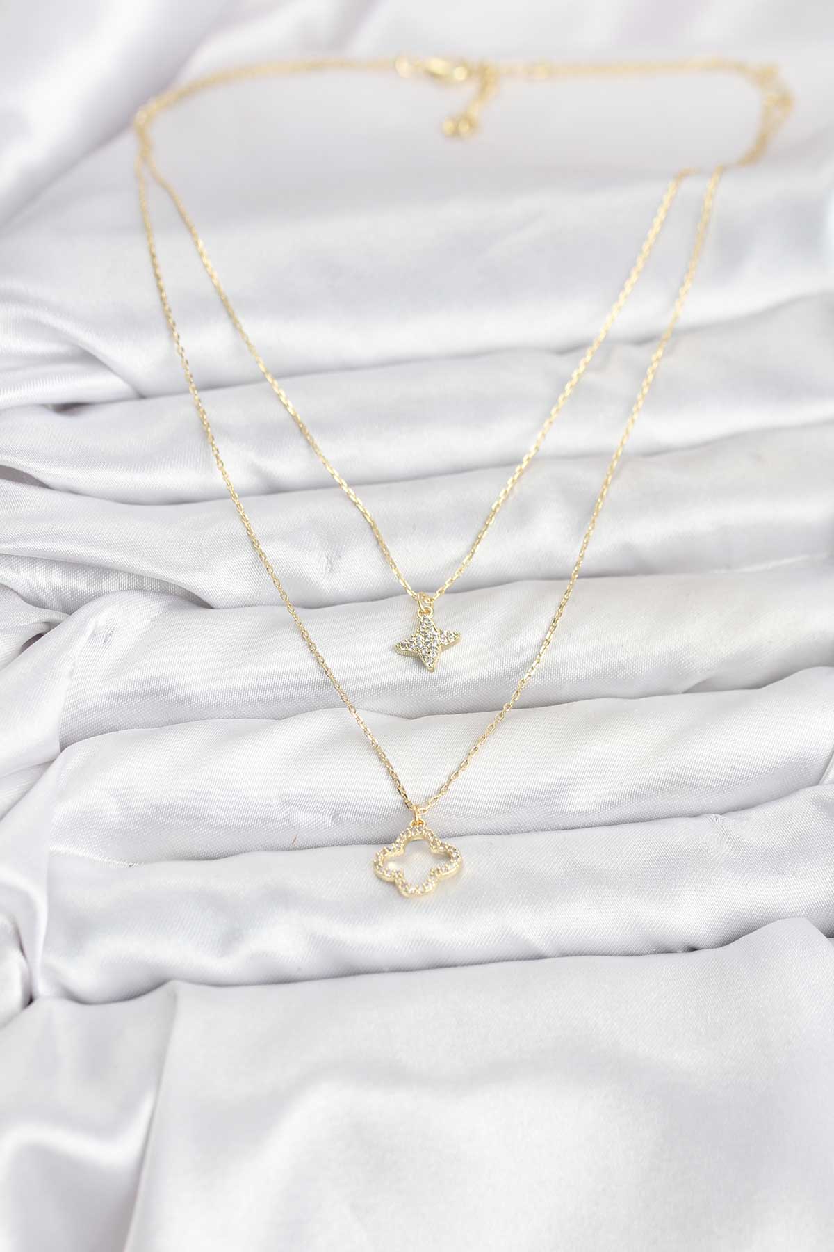 Pirinç Gold Renk Yonca Model 2'li Kadın Kolye - 266695