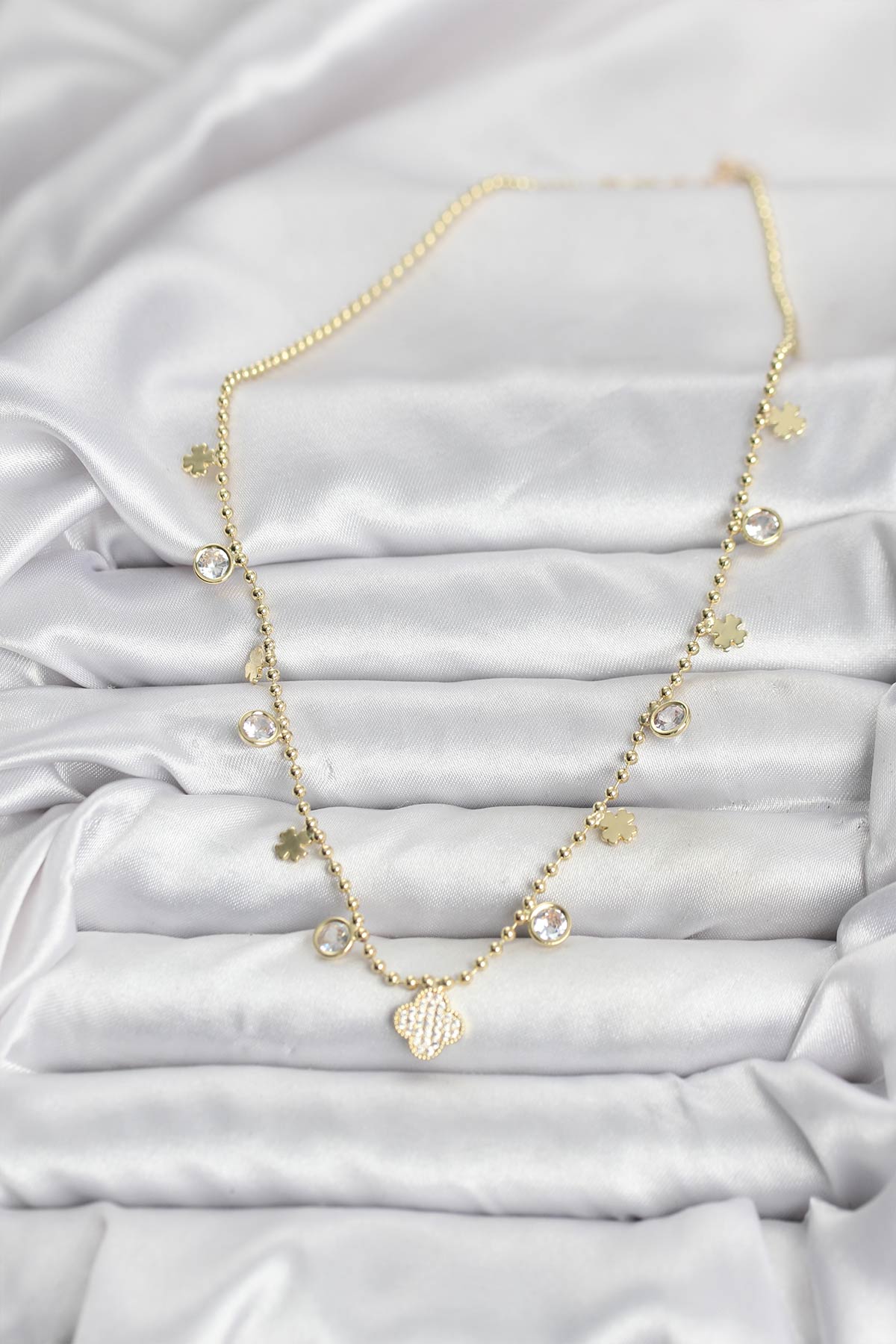Pirinç Gold Renk Yonca Model Kadın Kolye - 266250