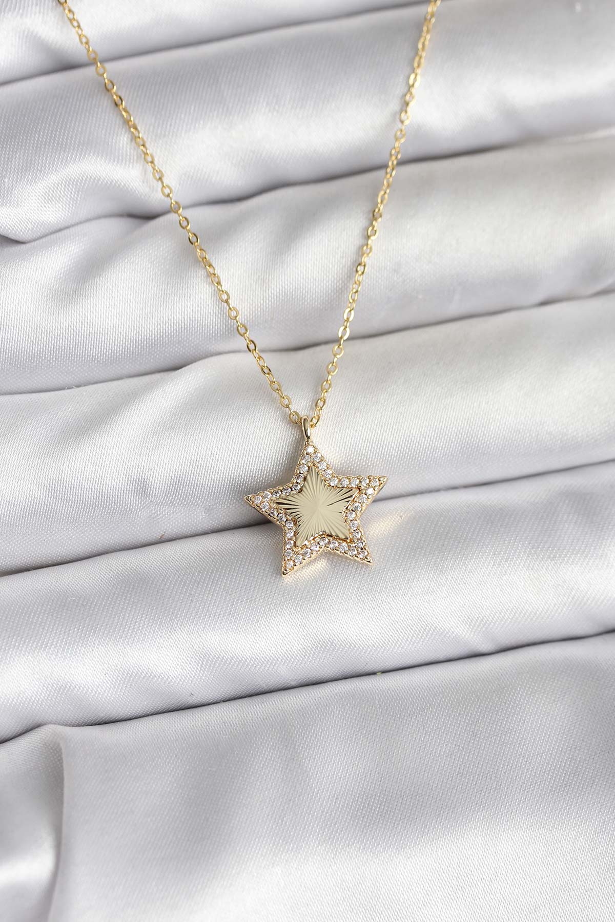 Pirinç Gold Renk Zincirli Yıldızlı Model Kadın Kolye - 266573