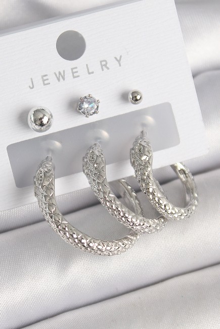 Pirinç Gold Renk Zirkon Taş Detaylı Halka Yılan Model Kadın Küpe Seti - 260923