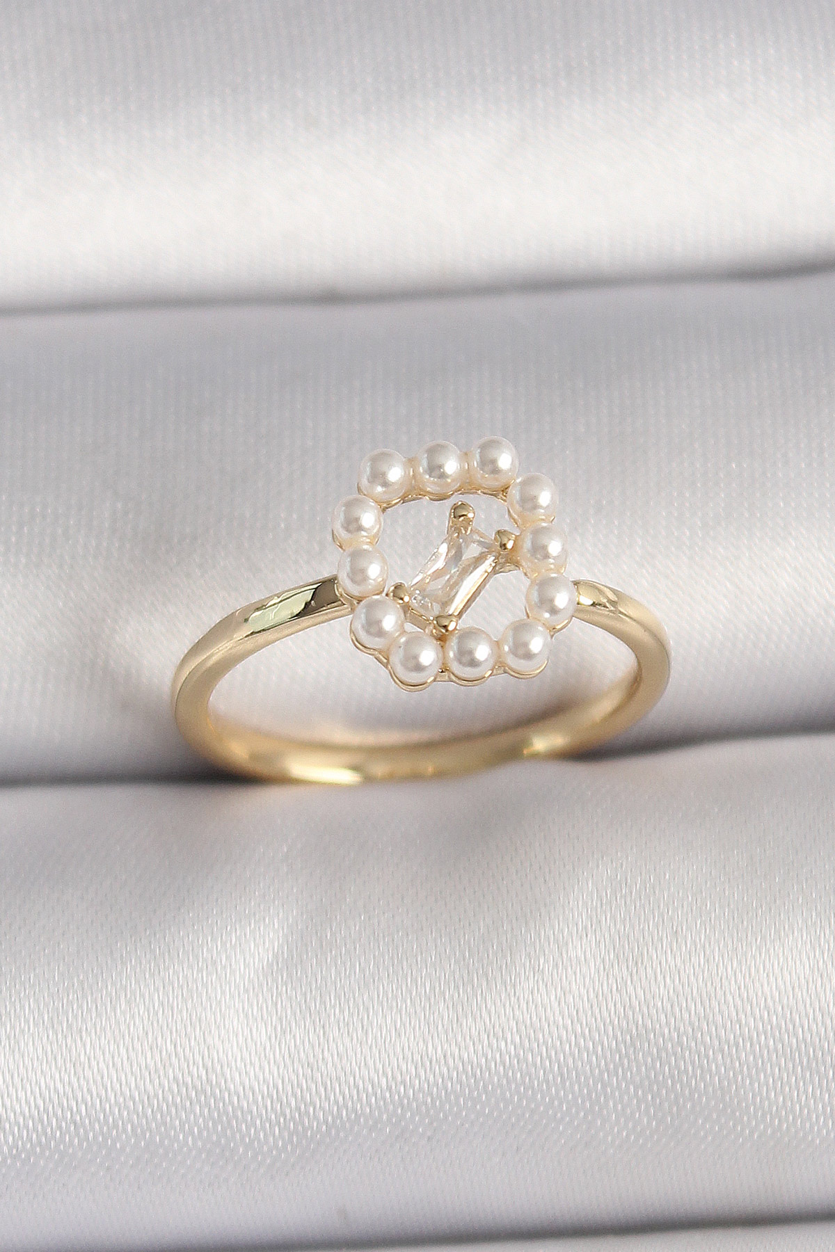 Pirinç Gold Renk Zirkon Taş Detaylı İncili Ayarlanabilir Yüzük - 259958