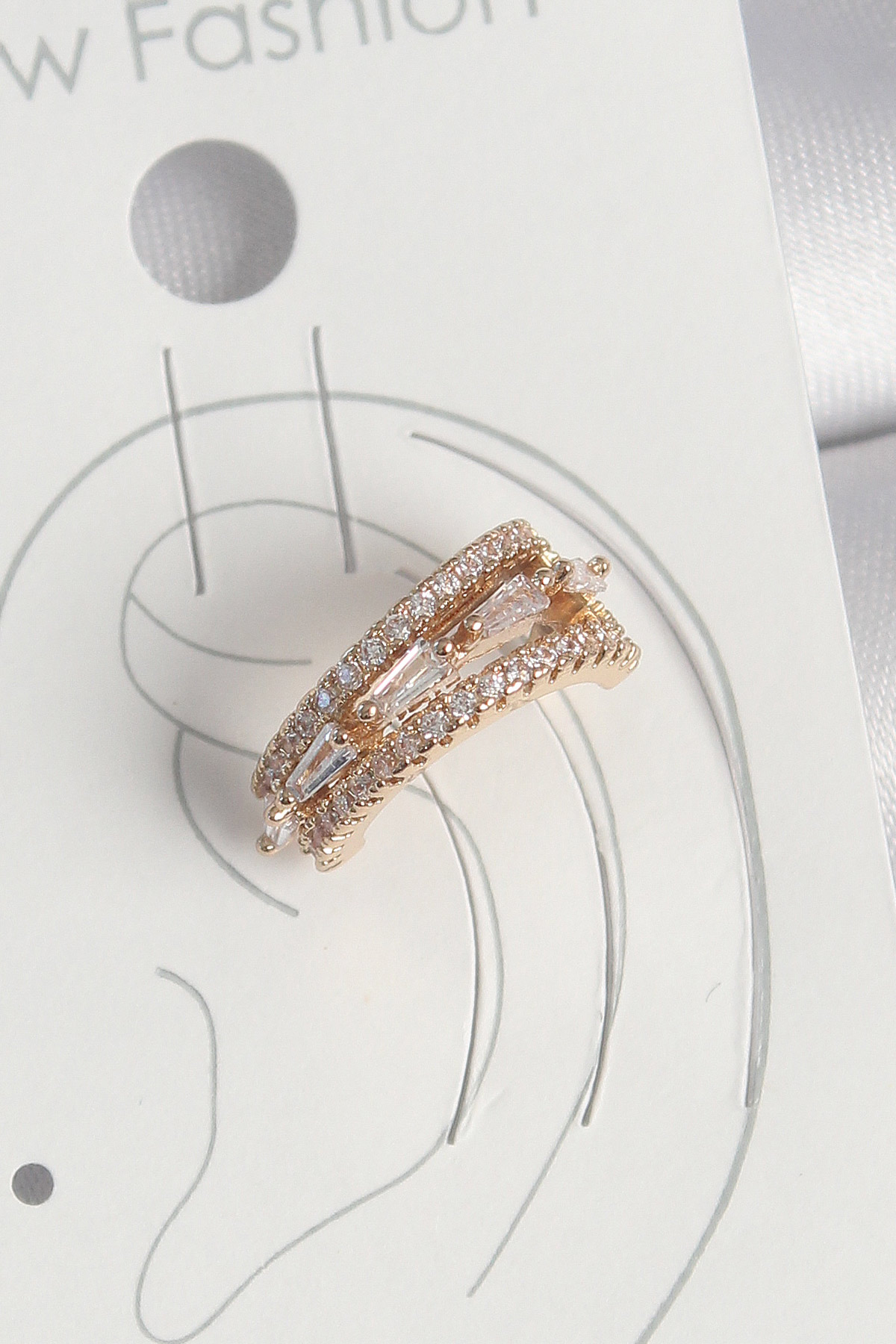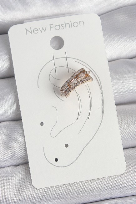 Pirinç Gold Renk Zirkon Taşlı 3'Lü Sıralı Model Kadın Kıkırdak Küpe - 262599